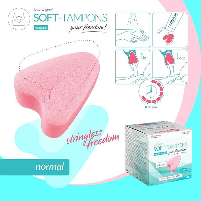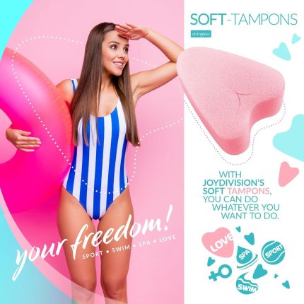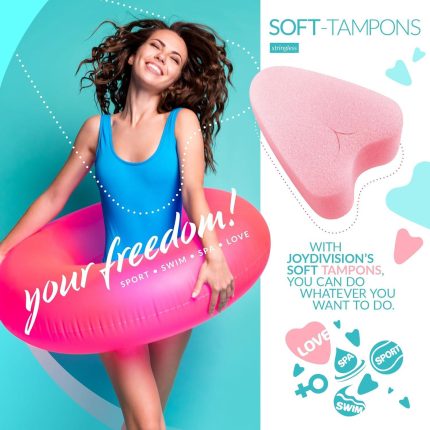 OverviewFor a thread-less freedom – the JOYDIVISION soft tampons without thread are the perfect companion in an active everyday life: with these tampons, swimming, sauna, sports and intimate during the period is no problem. Soft and flexible – the tampon adapts to your body thanks to its flexible shape and is barely noticeable – soft tampons ensure a comfortable wearing experience where otherwise visible hygiene items interfere. Easy to use – the mini tampons can be inserted without applicator or lubricant thanks to the ergonomic shape and the soft material – the handle tab allows quick removal. Hygienic material: our soft tampons are made of foam with Oeko-Tex Standard 100 certification and are clinically tested. The menstrual sponges are individually hygienically packaged.